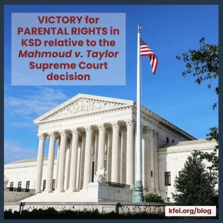This confirmation that KSD is aware of its obligation to comply with the U.S. Supreme Court’s Mahmoud v. Taylor decision is pivotal. Parents, YOUR rights to raise your children are primary & protected! Stay alert and please report any violations to contact@kfei.org.